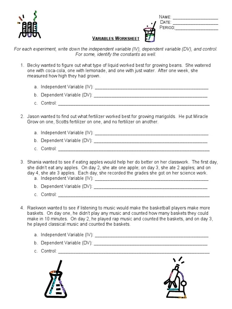 Identify Variables Worksheet Science - Scientific Method And The Simpsons /. The student wants to design an experiment to test this hypothesis. Identifying independent and dependent variables in experiments. I can identify variables in an experiment. Identify the types of variables in each written statement. For each item below, specify the independent and dependent variables, as well as constants.